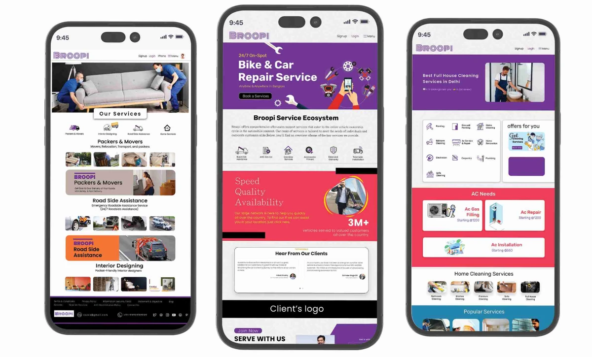 Broopi is a versatile service provider that meets the requirements of companies and individuals for home services, roadside assistance, and relocation, with additional interior design on the horizon. Broopi's diverse portfolio includes packers and movers, home maintenance, and emergency roadside assistance. Their clientele is vast and loyal!