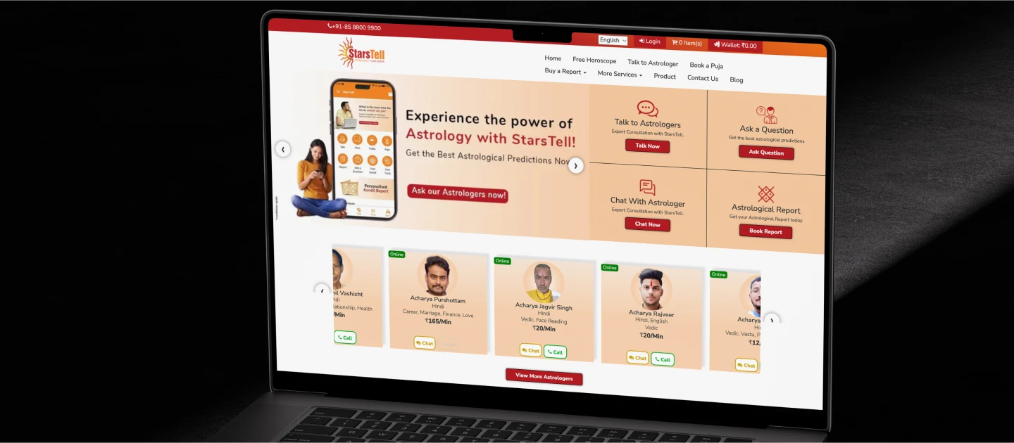 StarsTell struggled with previous digital marketing efforts that failed to enhance their online presence. The project required a deep understanding of Flutter to improve sales & create a user-friendly app that could integrate multiple features like astrology consultations, secure payments, and more.
